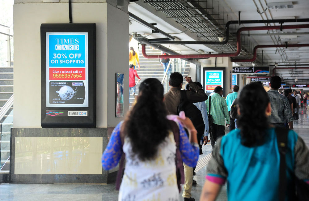 A one of a kind Digital OOH Network to power-charge your campaigns in Mumbai city. This network of screens offers a dynamic and compelling advertising solution which includes synchronization, live updates, RSS feeds, touch screen, social media/mobile integration etc. and is intended to reach a tech savvy audience base, exclusively at concourse level of stations.