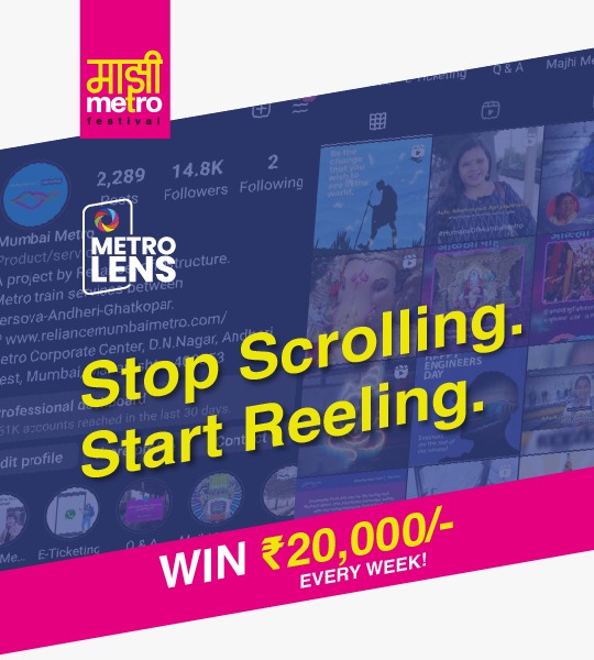 About Majhi Metro Majhi Metro Gallery Majhi Metro 2023 FAQs Majhi Metro is back to reward art & talent. Here is your chance to get your talent noticed. Concept & Theme It aims to capture the beauty of Mumbai Metro One as a service that not only offers commuting experience but also connects to the community at large, through the lens of our commuters. Steps to get selected to enter the contest Register Create Reel (up to 90 seconds) Submit(Enhance your chance by submitting maximum entries) Contest starts: 18th October 2023 Contest ends: 14th November 2023 Registration Submission FAQs × 1. What is the Majhi Metro 2023? Majhi Metro is Mumbai Metro One’s annual art festival. This year Majhi Metro shall award popular Instagram reels showcasing beauty of Metro One. 2. What are the prizes? Weekly prizes of ₹20,000/- (entries screened and posted by Metro One will be considered) a. ₹10,000/- for contributor with maximum entries in the week. b. ₹10,000/- for reel with maximum reach. c. Mega Prizes*: 1st Prize: ₹25,000/- 2nd Prize: ₹15,000/- 3rd Prize: ₹10,000/-*as judged by Jury**Prizes sponsored by partners 3. How does one participate in the Majhi Metro Festival? a. Register b. Make reel (Minimum 20 seconds and not exceeding 90 seconds) c. Submit on Mumbai Metro One website (entries screened and posted by Metro One will be considered) 4. Can you participate by making a reel and tag Mumbai Metro One? No, all entries screened and posted by Metro One will be considered. 5. What are the themes for creating the reel/video? Reels should showcase the beauty of Metro One (Versova - Andheri - Ghatkopar route) 6. What is the specification of the video/reel to be made? a. Minimum 20 seconds and not exceeding 90 seconds b. Should be in .mp4 format only c. Video aspect ratio could be 4:5 or 1:1 d. Size to be limited to around 15 MB. 7. How can one know the result of the competition? Entries screened and posted by Metro One will be part of the contests, please check our Instgram handle. a. Weekly prize winners will be announced through our Instagram handle. b. Mega prize winners will be contacted separately.